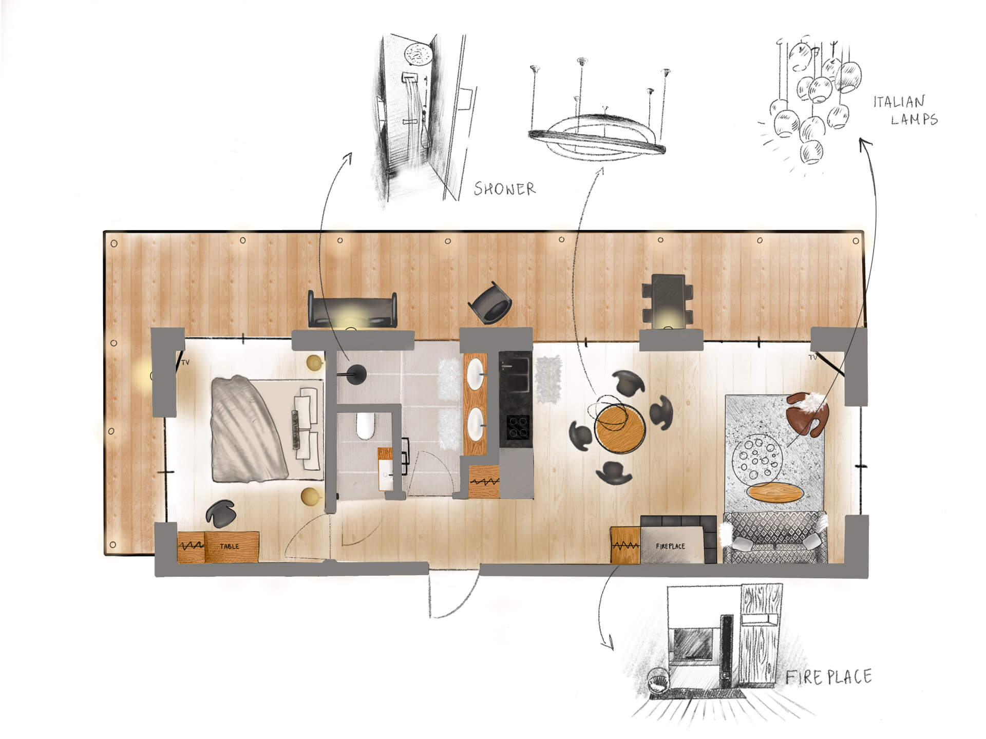 mit handgefertigten Designlampen